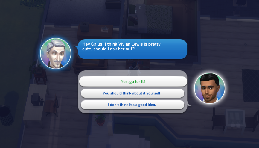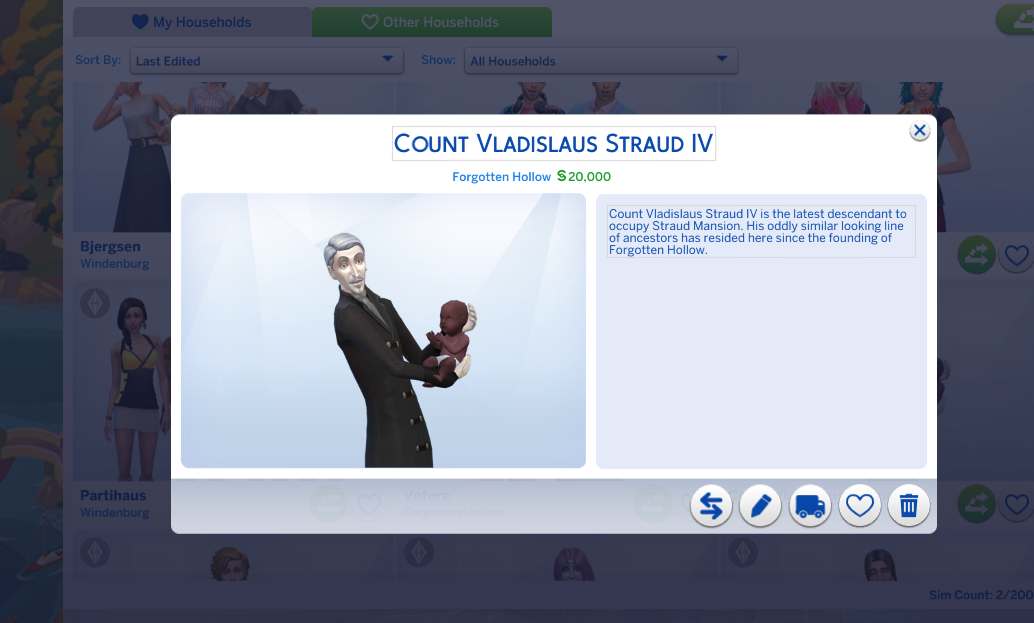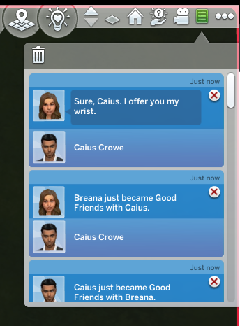 Something I wasn’t expecting was just how many times Vlad would call. He knew the vampire Sim due to coaching him, but he called to ask for dating advice so many times. After I finished the Scenario, I checked on him and he doesn’t have a wife, but he does have a baby?? And the baby has no family tree, so it wasn’t with any of the women he went on successful dates with?? Gotta love the Sims.