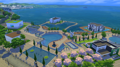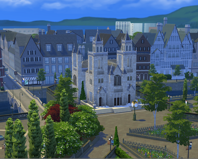 โDescription:ย It’s a surprise to some tourists that the government center for the huge city of San Myshuno is a relatively small building, but it’s true! The San Myshuno City Hall is the center of Uptown, and the entire outdoor plaza is part of the lot. Stop by to hear a speech or drop into the gift shop on the second floor.