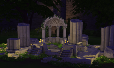 โฆย โHistory:ย Legends say that this unassuming campground was where Uriel Frost waited for his beloved flame for years after leaving his existenceย as a hermit to follow true love. The alleged joyous reunion of the couple inspired other love-lorn sims to pay a visit to the grounds in hopes that they may have similar luck.