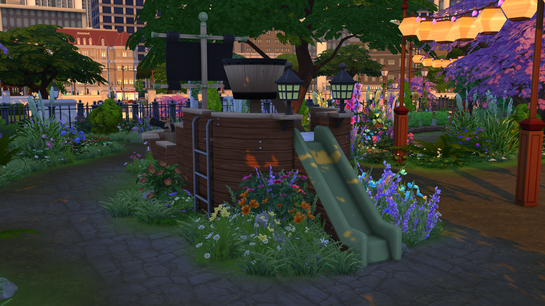 โฆย โHistory:ย Legends say that this unassuming campground was where Uriel Frost waited for his beloved flame for years after leaving his existenceย as a hermit to follow true love. The alleged joyous reunion of the couple inspired other love-lorn sims to pay a visit to the grounds in hopes that they may have similar luck.
